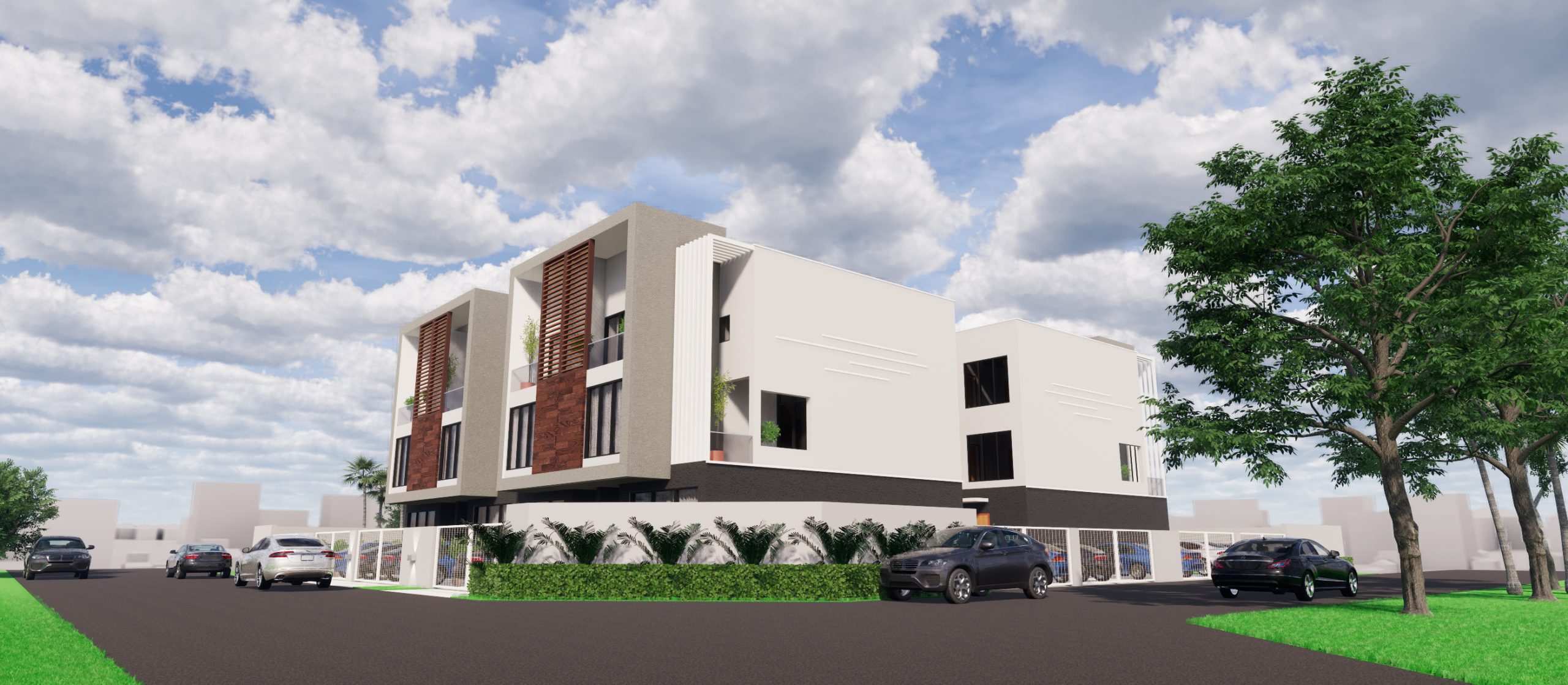 Olivia’s Court is a distinctive residential development consisting of 8 nos. 4-bedroom terrace units, gracefully situated on two suspended floors within the vibrant neighborhood of Ikate, Lekki, Lagos. These units are thoughtfully organized into two blocks, each containing four terrace units. The essence of this design is rooted in the principles of simplicity and clarity, showcasing a well-defined architectural form characterized by clean lines and a harmonious layout. The use of materials in this design is particularly noteworthy, elegantly expressing a rich palette that enhances the overall aesthetic appeal. By prioritizing simplicity and clarity, this architectural endeavor not only creates a visually striking presence in the Ikate neighborhood but also provides a functional and inviting living space for residents. It represents a seamless fusion of contemporary design and thoughtful craftsmanship, making it a standout addition to the local architectural landscape.